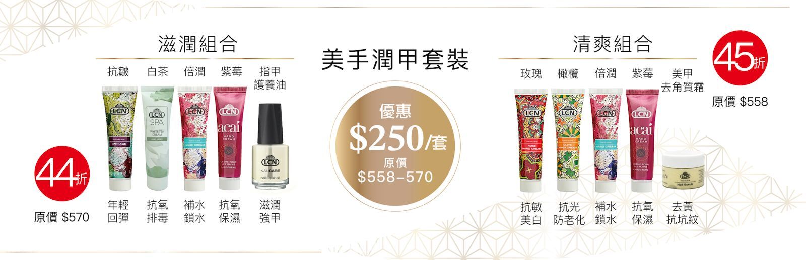 $500或以上, 送LCN 體驗裝2件 (價值:$40)