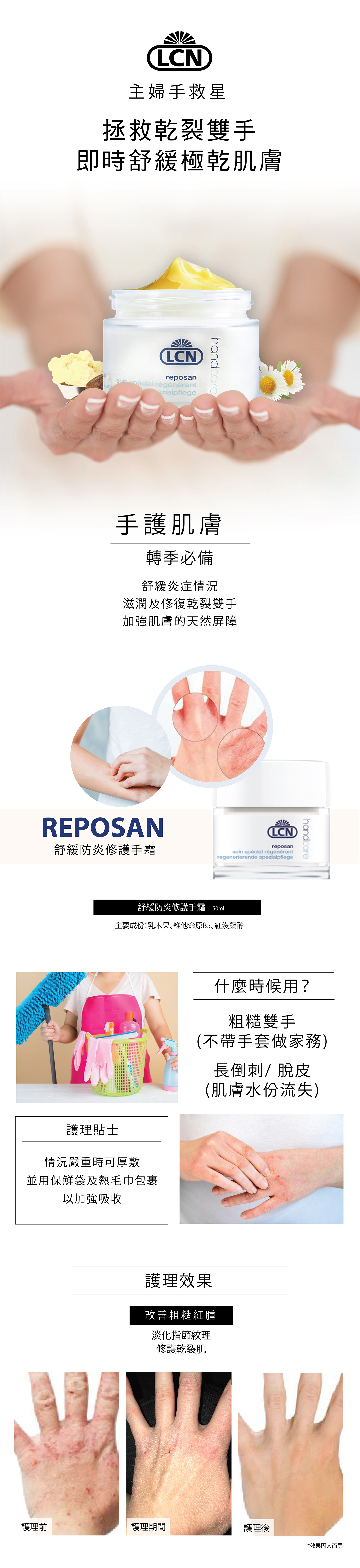 另可作深層療理,配合LCN潤手膜,幫助加強修復