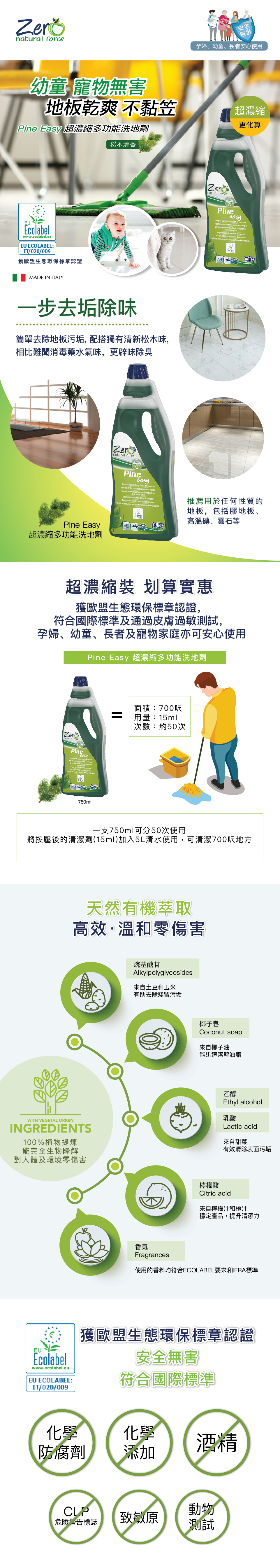 - 簡單去除地板水漬污垢,配搭獨有清新松木味,相比難聞消毒藥水氣味,更能辟味除臭,保持舒適怡人環境